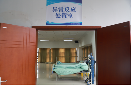 为确保师生接种后的安全问题,如有师生在观察时出现不良反应则马上进入异常反应处置室,由医务人员进行紧急处理。