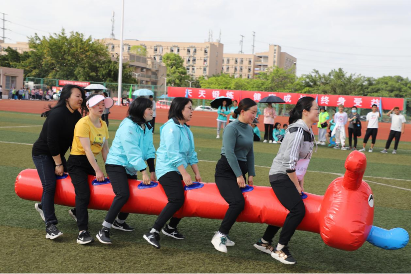据了解,本次教师组比赛以“团结合作、沟通信任”为主题,共计400余名教师参与其中。本次比赛注重展现教师之间的运动技巧与团队合作能力,发扬教师们勇往直前、拼搏进取的运动精神,赛项主要包括:旱地龙舟、12*50迎面接力赛和齐心协力。