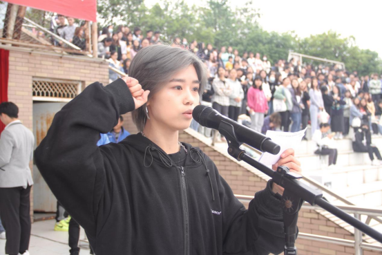 为保证赛场秩序,确保比赛顺利进行,成绩公告组裁判员代表邱琳玲老师与运动员代表王思薇同学进行了庄严的宣誓。邱琳玲老师说道:严肃认真、公正准确是裁判员坚守的准则;王思薇同学说道:我们将服从裁判,尊重对手,团结协作,以积极、饱满、热情的态度参加本届运动会。最后,两位代表分别预祝大家取得优异的成绩,并祝愿本次运动会取得圆满成功。