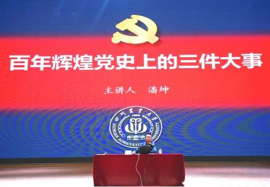 为深入推动全院党员师生积极投身党史学习教育,切实增强对于党史学习教育的深刻感悟,4月13日下午,我院邀请四川农业大学档案馆馆长兼校史办主任潘坤教授在阳光体育馆做以《百年辉煌党史上的三件大事》为主题的党史学习教育系列专题讲座。我院全体党员师生和入党积极分子近800余人参加本次讲座,讲座由罗潇副院长主持。