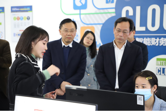 李江厅长一行实地考察了学院校史馆、智能财务云中心、“9+3”和职教本科试点学生课堂、无纸化考试基地、多专业实训基地、四川财经-成都金税产学研研究院。