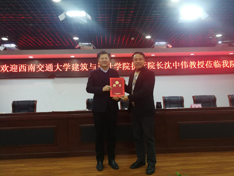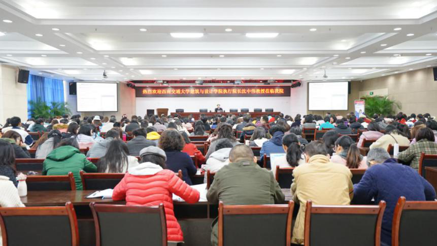 11月24日下午,我校邀请西南交通大学建筑与设计学院执行院长、博士生导师沈中伟教授在明德楼308会议厅举办了主题为《以文化物 以物化人——什么是美的校园》的讲座,学院党委委员、副院长钟用,副院长罗潇,全校教职工及学生代表共400余人参加讲座,讲座由罗潇副院长主持。