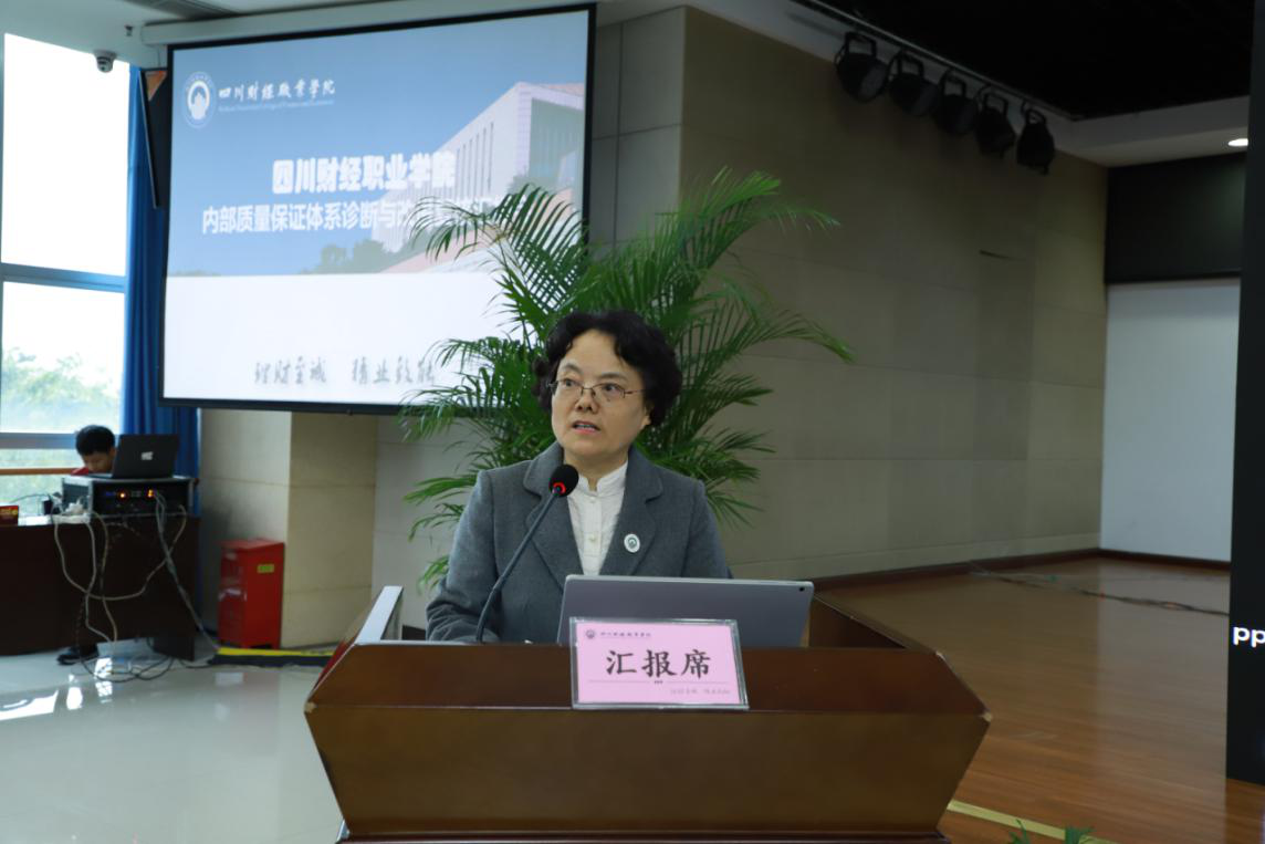 财政厅党组成员、机关党委书记秦敏代表财政厅对专家组成员表示欢迎,她介绍了学校诊改工作意义并希望专家组多加指导,助推学校发展迈上新台阶,为促进四川省经济社会高质量发展、推动治蜀兴川再上新台阶提供强有力人才支撑和智力支持。