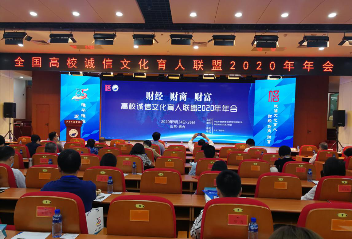 9月25日,全国高校诚信文化育人联盟2020年年会在美丽的山东工商学院举行。本次年会由中国高等教育学会高等财经教育分会、高校诚信文化育人联盟主办,山东工商学院承办。中国高等教育学会高等财经教育分会副理事长、秘书长张国才,山东省教育厅思想政治工作处处长陈成标,高校诚信文化育人联盟理事单位的代表及来自全国财经类高校的领导和专家近40余人出席会议。我院副院长罗潇带队参加会议并作交流发言。