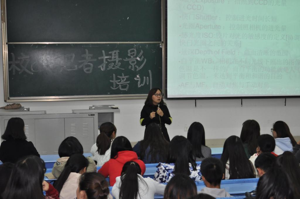 2016年11月1日下午两点,第七届大学生新闻中心校媒记者系列培训会于教学楼B113展开。此次摄影培训会由大学生新闻中心的辜韦维老师主讲,目的是向同学讲解摄影的基本知识,培养摄影兴趣,提高摄影技巧,培养综合素质人才。