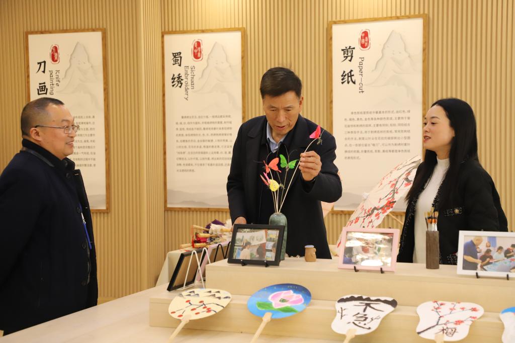 任世伟一行先后参观考察了“一站式”书香社区、非物质文化遗产体验中心、图书馆、名师工作室、校史馆、红色财经文化馆,对我校办学成果、思政建设、校园文化建设等工作给予高度赞赏。