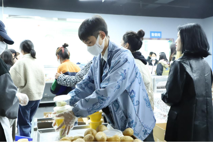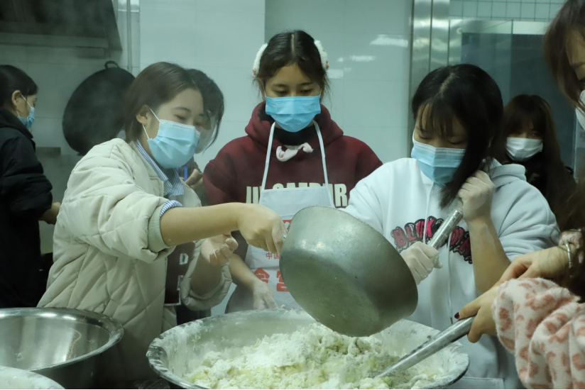 清晨桃李苑的宁静被一声声的“库史木萨,孜莫格尼”打破,少数民族同学脸上洋溢着笑容,相互之间交换新年祝福。据了解,彝族在过年时要吃土豆、荞麦粑粑、坨坨肉、酸菜汤等特色美食。同学们在阿别木呷老师的带领下有条不紊的进行彝族特色菜的制作,女生们负责洗菜、切菜、和面和制作拌凉菜等环节;男生们负责制作猪肉、荞面粑粑和坨坨肉等环节。厨房里洋溢着欢声笑语,充满着过年的氛围。