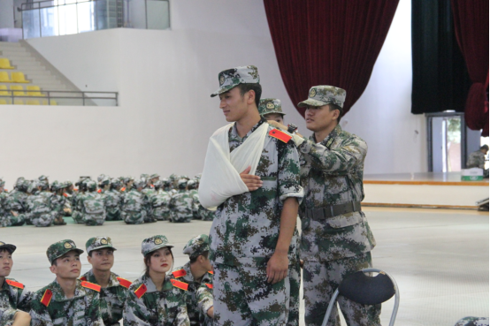 军训期间,学院开展了红十字救护培训,同学们在民兵连的指导下学习创伤救护和心肺复苏等急救措施,进一步普及应急救护常识,掌握急救技能;在学生公寓开展逃生自救应急演练教育活动,再现火灾突发时烟雾弥漫的场景,在教官的带领下,同学们弯腰、低头、用湿毛巾捂住口鼻,穿过走廊,通过楼梯,跑向操场。本次演练活动,增强了同学们的消防安全意识。