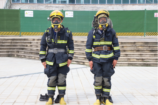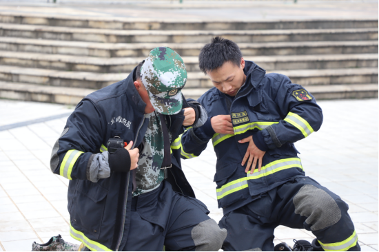 聆听消防知识,感受消防重任。消防员向同学们讲解了隔热服、抢险救援服等基本救援工具的作用,以及灭火器的正确使用方式,并且现场进行火灾扑救消防实战演练。我院两名同学在消防员的讲解与引导下,试穿消防战斗服,体验消防员身着数十斤的装备,感受消防员所肩负的重任。