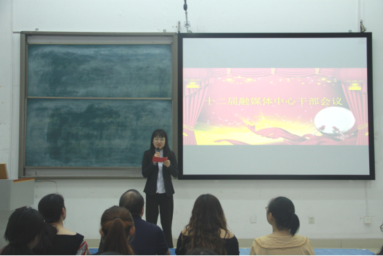主席团代表刘雪茹发言,强调各位学生骨干要以饱满的精神面貌做好新学期的工作。并强调组织好机构本学期的宣传招新工作,创新部门工作方式和内容,提升部门在学校的影响力,把融媒体中心建成一个积极向上又温暖的大家庭。