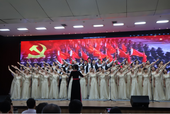 6月28日下午两点半,学院党委书记张华和副院长符刚(主持行政工作)带领全院60名教职工、党员参加了财政厅庆祝中国共产党成立100周年“颂歌献给党”歌咏会。