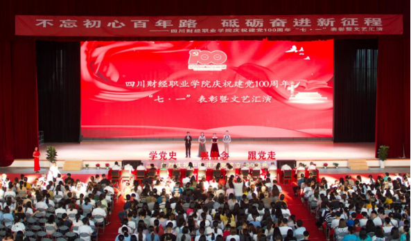 为庆祝中国共产党建党100周年,讴歌党的辉煌历程和丰功伟绩,深入学好党史、新中国史、改革开放史、社会主义发展史,进一步发扬革命传统和优良作风,增强广大党员的光荣感与使命感,激发我院师生历史责任感和奋斗精神。6月22日晚上18:30,学院在阳光体育馆内隆重举行以“砥砺奋进新征程 不忘初心百年路”为主题的庆祝建党100周年“七·一”表彰暨文艺汇演。全体院领导,中层干部,教职工党员,2019级全体学生党员及入党积极分子和2020级全体学生观看此次晚会。