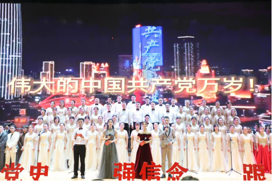 晚会最后,全体师生齐声合唱《没有共产党就没有新中国》。本次活动丰富的视听盛宴唱响了学院广大党员永远跟党走的时代旋律,激励广大党员群众不忘初心牢记使命、拼搏进取砥砺前行,以新担当新作为奋力开创学院各项事业高质量发展。一百年峥嵘岁月,一百年风雨兼程,永远跟党走,奋进新时代。