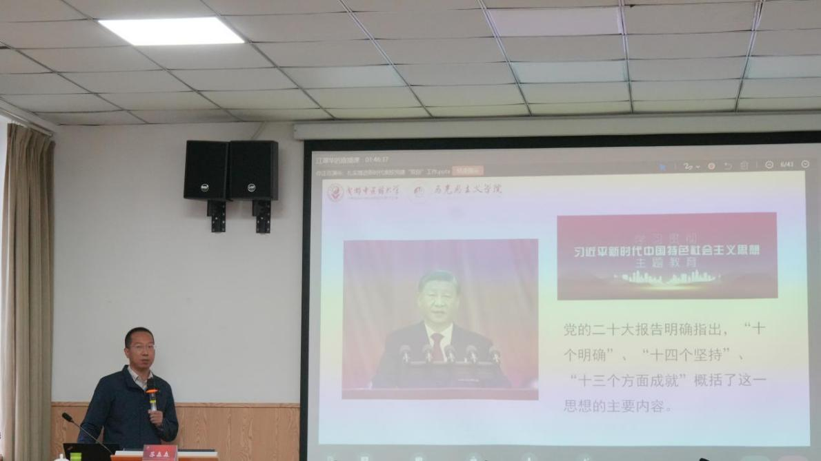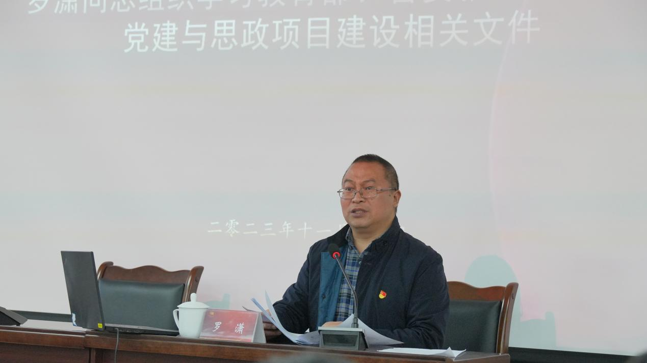 会上,罗潇传达学习了教育部、省委教育工委关于党建与思政项目建设相关文件要求,通报了学院2022年立项党建与思政项目验收结果,发布了2024年校级党建与思政项目、课题。会议邀请了成都中医药大学苏森森教授以《扎实推进新时代高校党建“双创”工作 以高质量党建引领高质量发展》为题介绍了新时代高校党建“双创”工作、全国党建工作样板支部建设、全省高校优秀支部工作法和样板支部建设工作法的相关经验做法。
