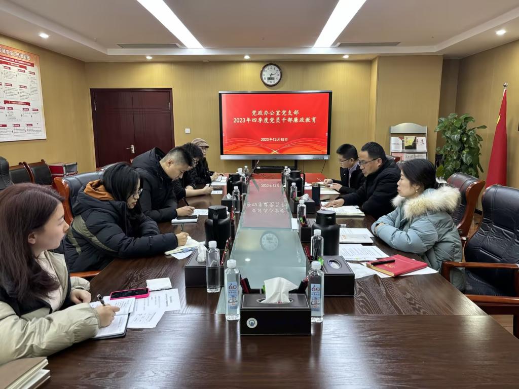 2023年12月18日下午2:10,党政办公室党支部在明德楼912会议室召开了2023年四季度党员干部廉政教育会议。本次会议由党支部书记张倩主持,旨在加强党员干部的廉政教育和纪律观念,促进党风廉政建设和反腐败斗争的深入开展。