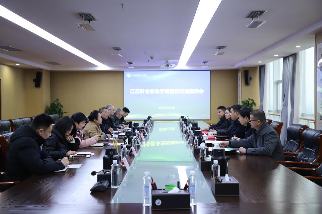 2023年12月21日上午,江苏财会职业学院党委副书记、院长费小岩一行5人到我院交流座谈。学院党委书记张华,党委委员、副院长罗潇,学院党委委员、会计学院院长李代俊,学院党委委员、信息学院院长李建军,党政办公室主任张倩,教务处处长杨毅,宣传统战部副部长王东,马克思主义学院红色财经研究中心副主任欧美强陪同参观并参加座谈。座谈会由罗潇副院长主持。