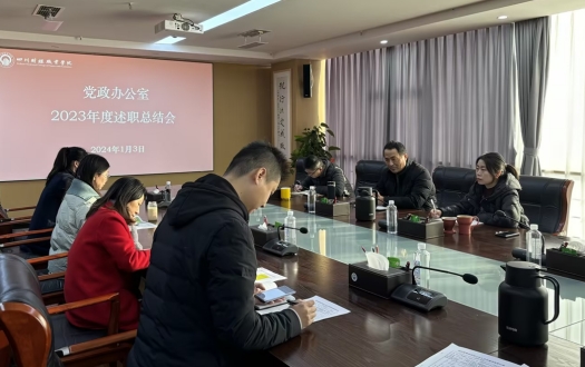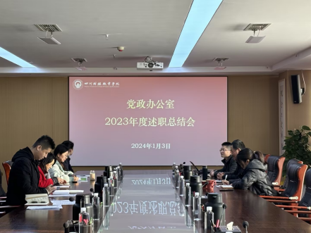 2024年1月3日上午,党政办公室在明德楼913会议室召开了2023年度述职总结会。会议由办公室主任张倩主持,分管院领导党委委员、副院长肖兆飞出席会议,党政办公室全体成员参加了会议。