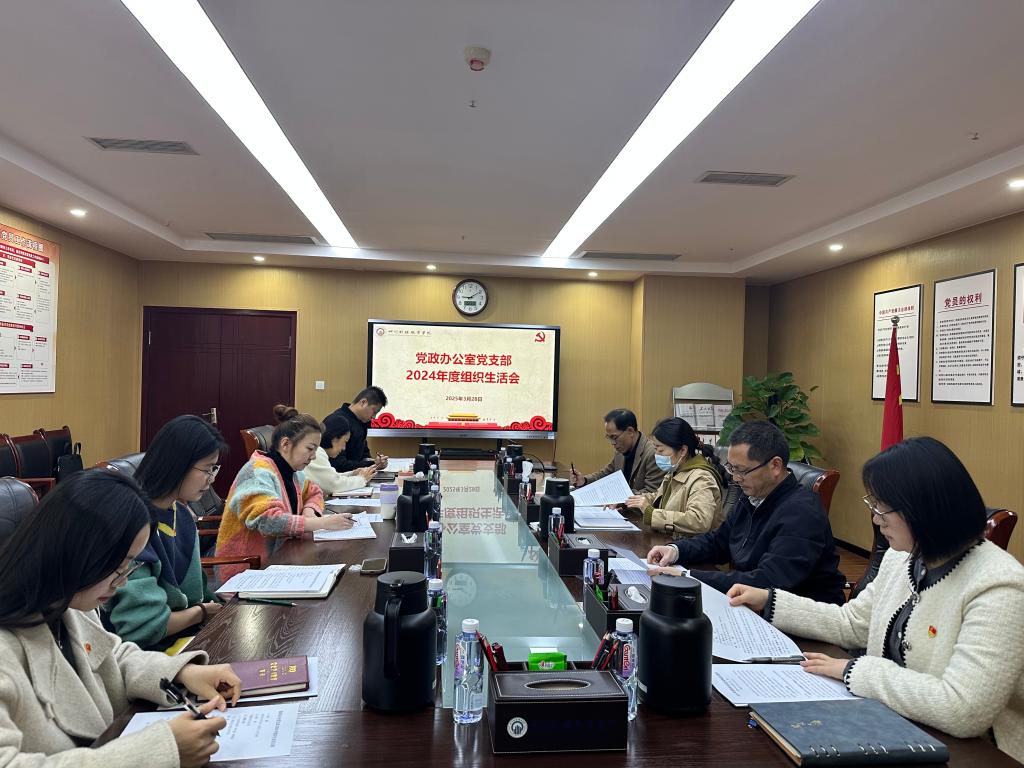 2025年3月28日上午9:00,党政办公室党支部在明德楼912会议室召开2024年度组织生活会。学校2024年度组织生活会督导组督导、学校党委委员、组织部部长郑代富,学校2024年度组织生活会督导组督导、纪检监察办公室主任杨晓斌出席会议,党政办公室党支部全体党员参加会议。