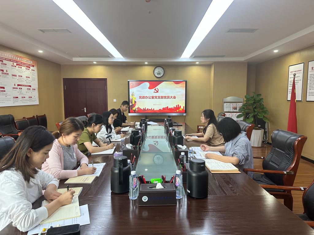 2025年5月6日下午4:30,党政办公室党支部在明德楼912会议室召开全体党员大会,会议由党支部书记张倩主持,党政办公室党支部全体党员参加会议。