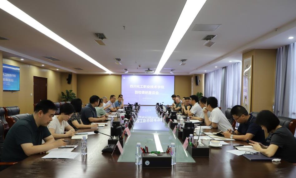 6月17日上午,四川化工职业技术学院党委副书记、院长文申柳,副院长吴立凡一行10人到校交流座谈。学院院长符刚,党委委员、副院长肖兆飞参加座谈会,会议由肖兆飞副院长主持。
