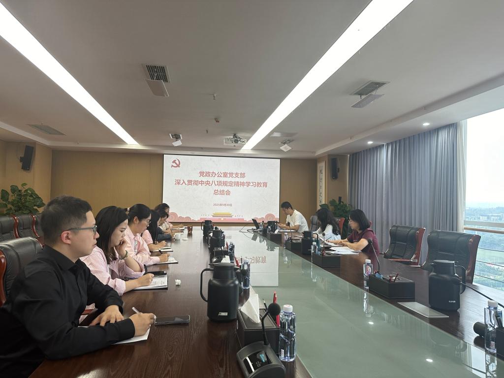 2025年9月30日下午3:00,在明德楼913会议室,党政办公室党支部召开深入贯彻中央八项规定精神学习教育总结会。党政办公室党支部全体党员参会。