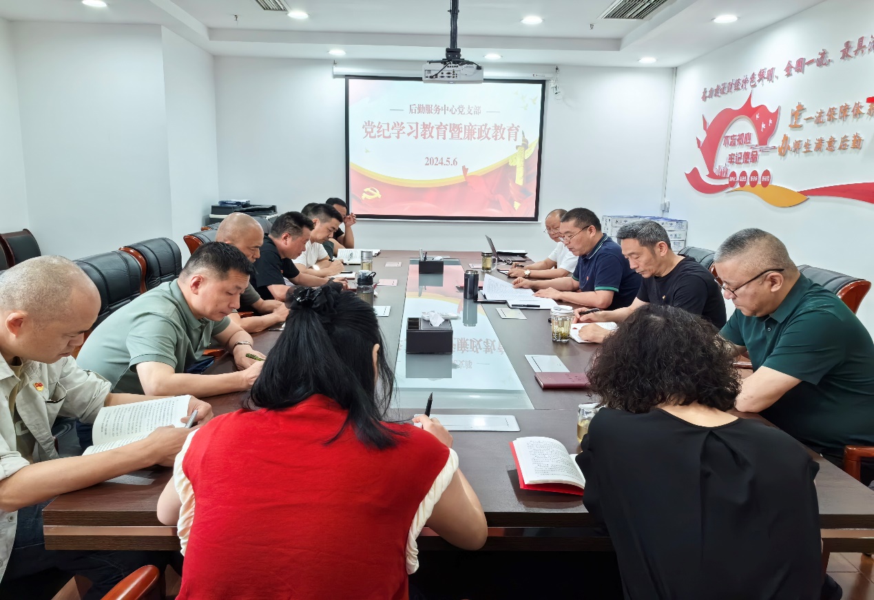 为推动支部党纪学习教育走深走实、见行见效,2024年5月6日上午,后勤服务中心党支部在明德楼1105会议室组织开展了以“学条例 守党纪”专题教育暨廉政教育为主题的专题学习会,会议由支部书记文洁主持,全体党员干部参加了本次学习会。