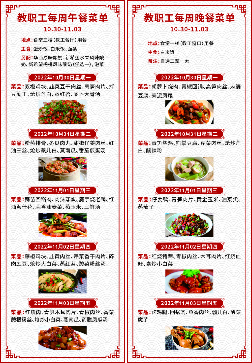 一、如遇就餐人员变化,原材料采购等原因,每日供应菜品以实际呈现为准;