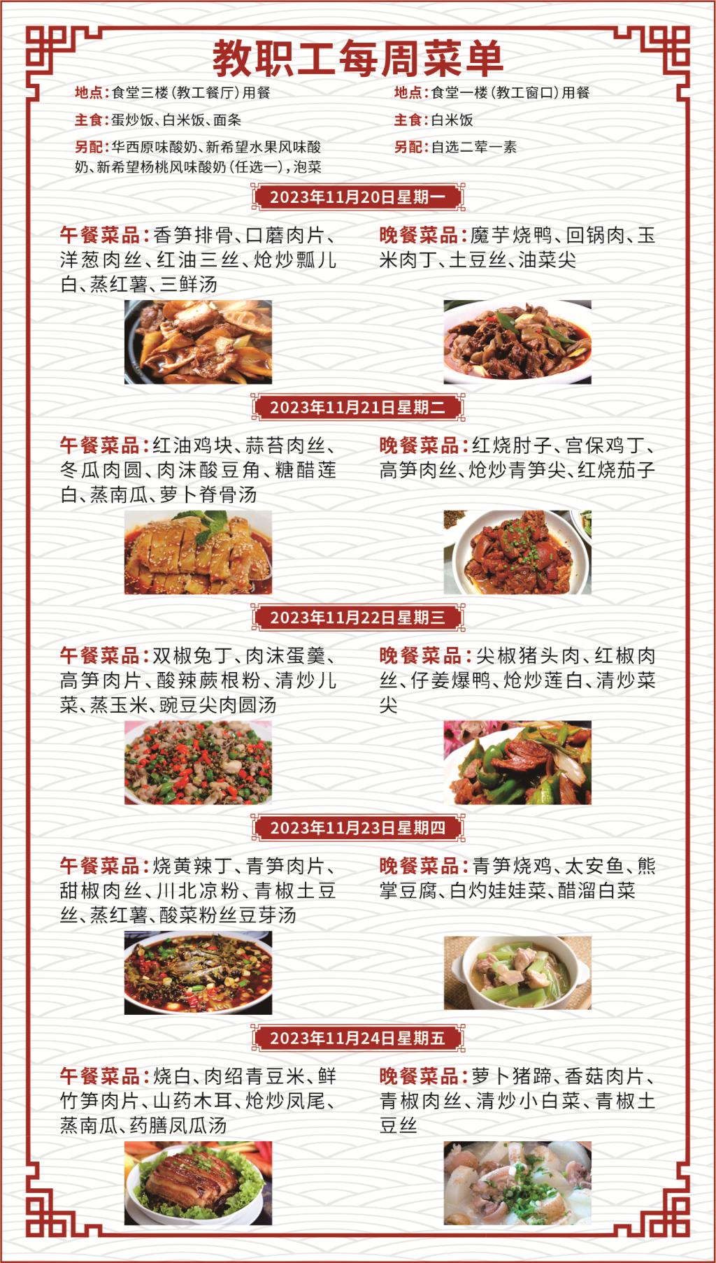一、如遇就餐人员变化,原材料采购等原因,每日供应菜品以实际呈现为准;