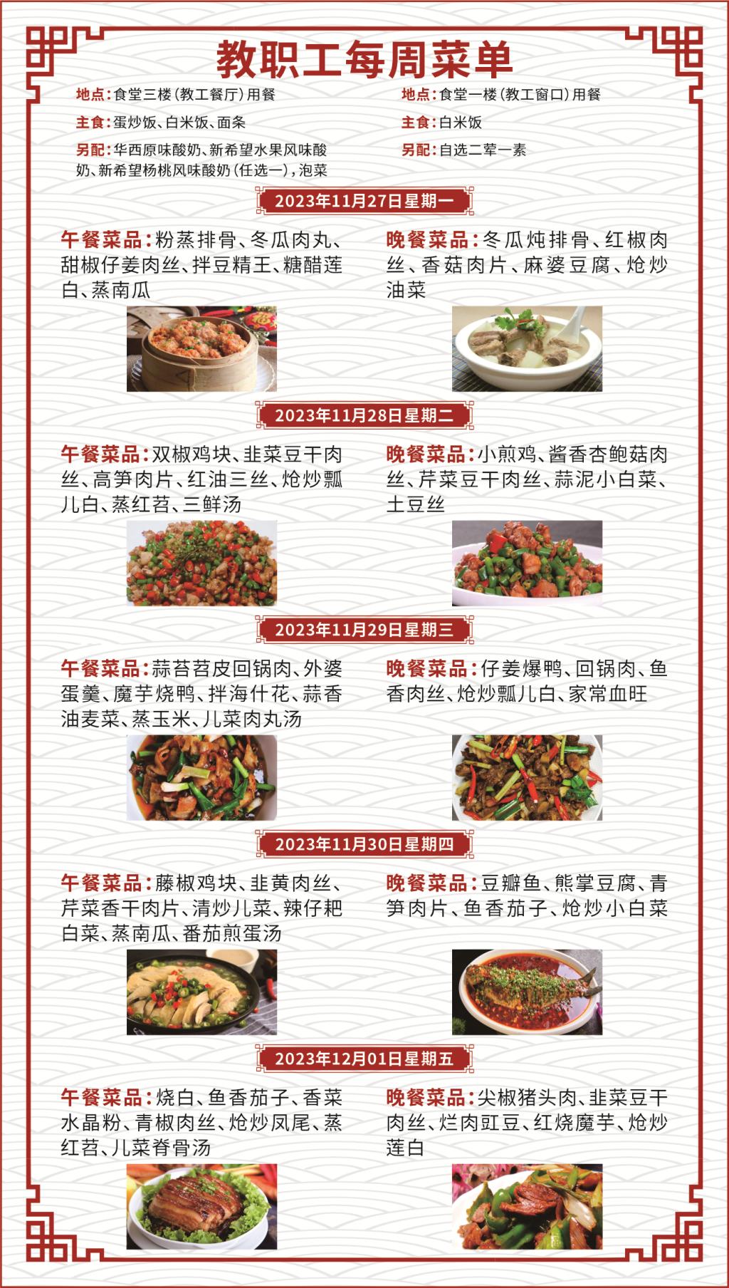 一、如遇就餐人员变化,原材料采购等原因,每日供应菜品以实际呈现为准;