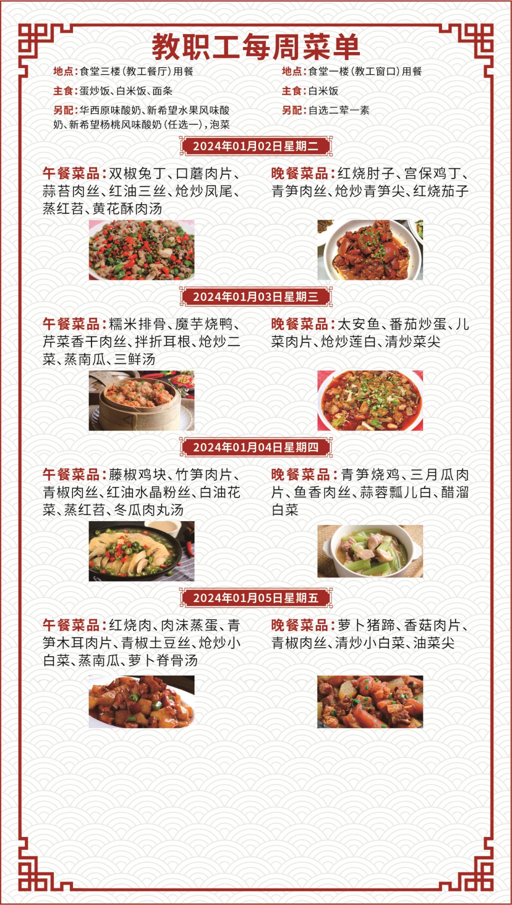 一、如遇就餐人员变化,原材料采购等原因,每日供应菜品以实际呈现为准;