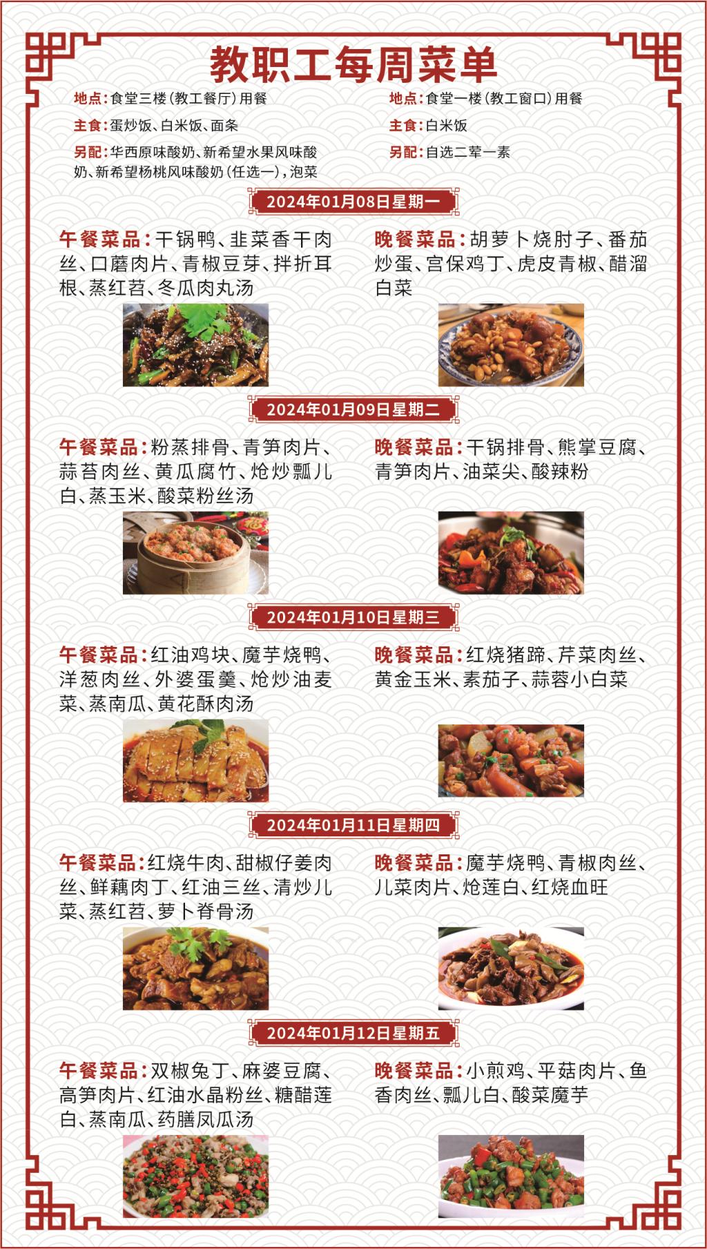 一、如遇就餐人员变化,原材料采购等原因,每日供应菜品以实际呈现为准;