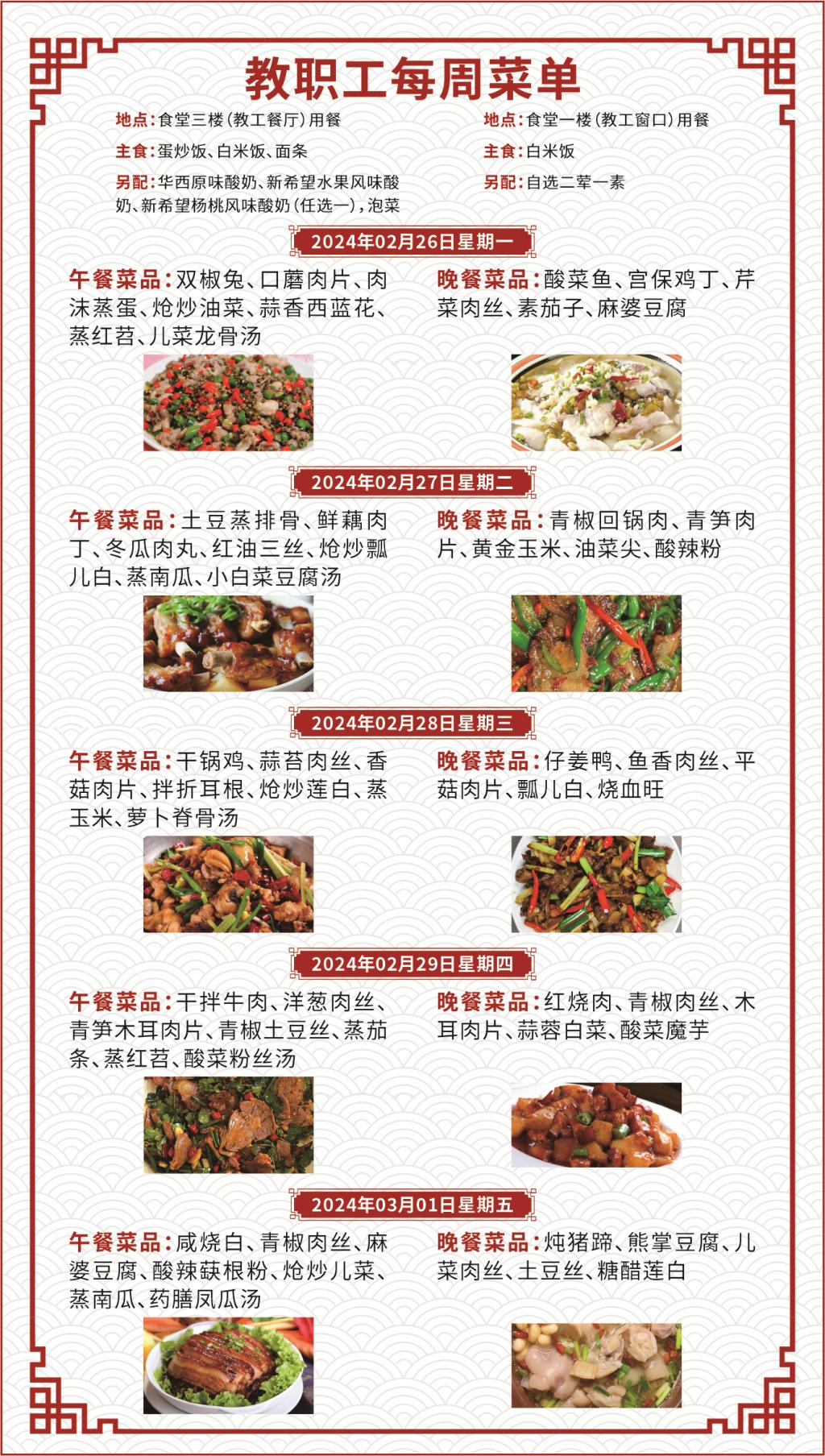一、如遇就餐人员变化,原材料采购等原因,每日供应菜品以实际呈现为准;