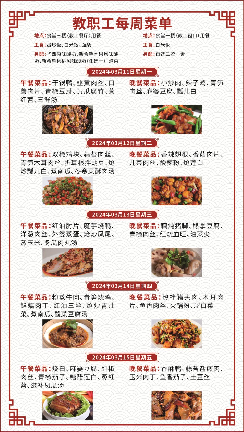 一、如遇就餐人员变化,原材料采购等原因,每日供应菜品以实际呈现为准;