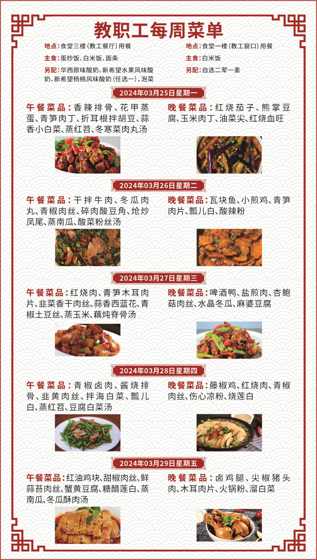 一、如遇就餐人员变化,原材料采购等原因,每日供应菜品以实际呈现为准;