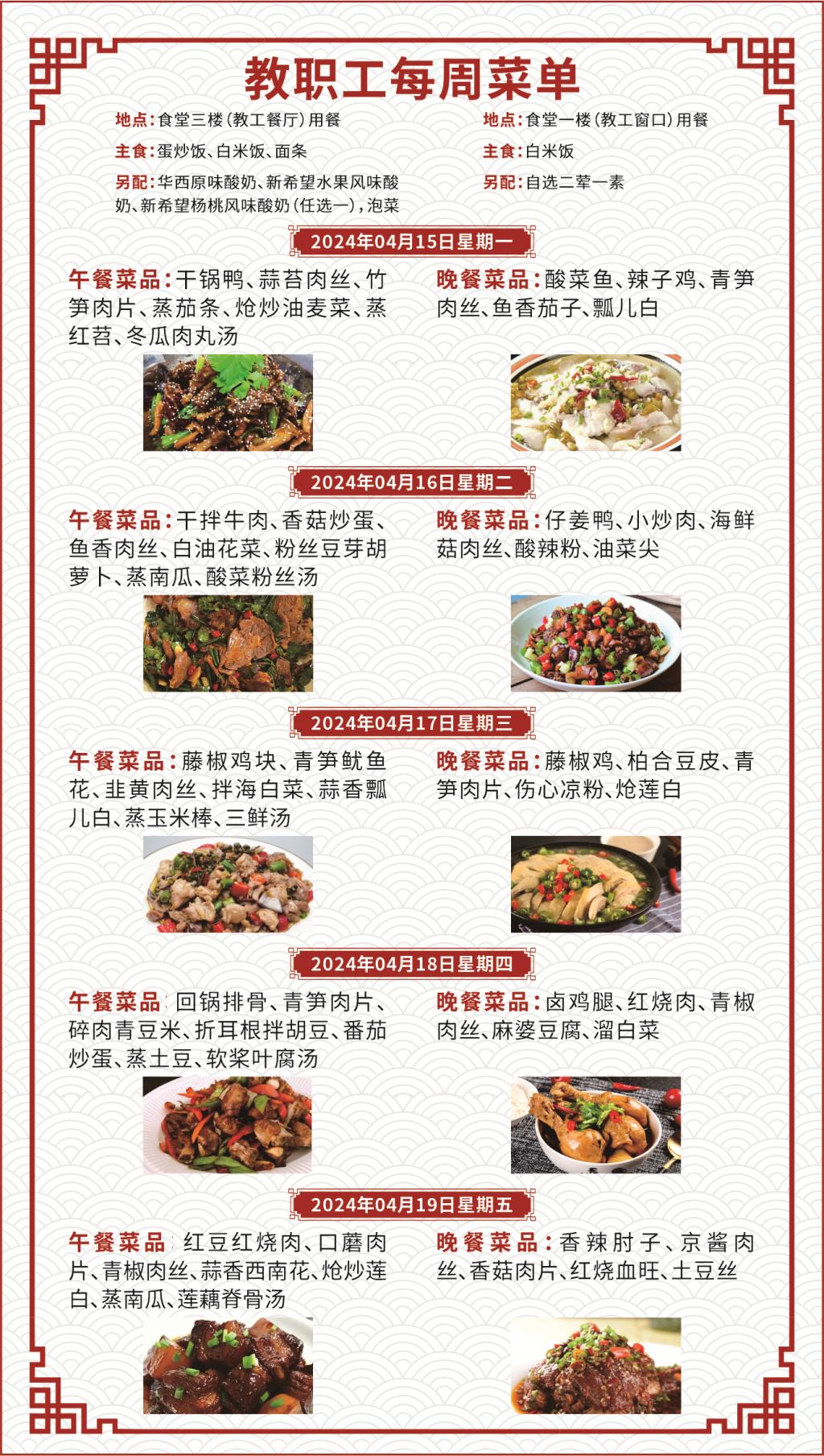 一、如遇就餐人员变化,原材料采购等原因,每日供应菜品以实际呈现为准;