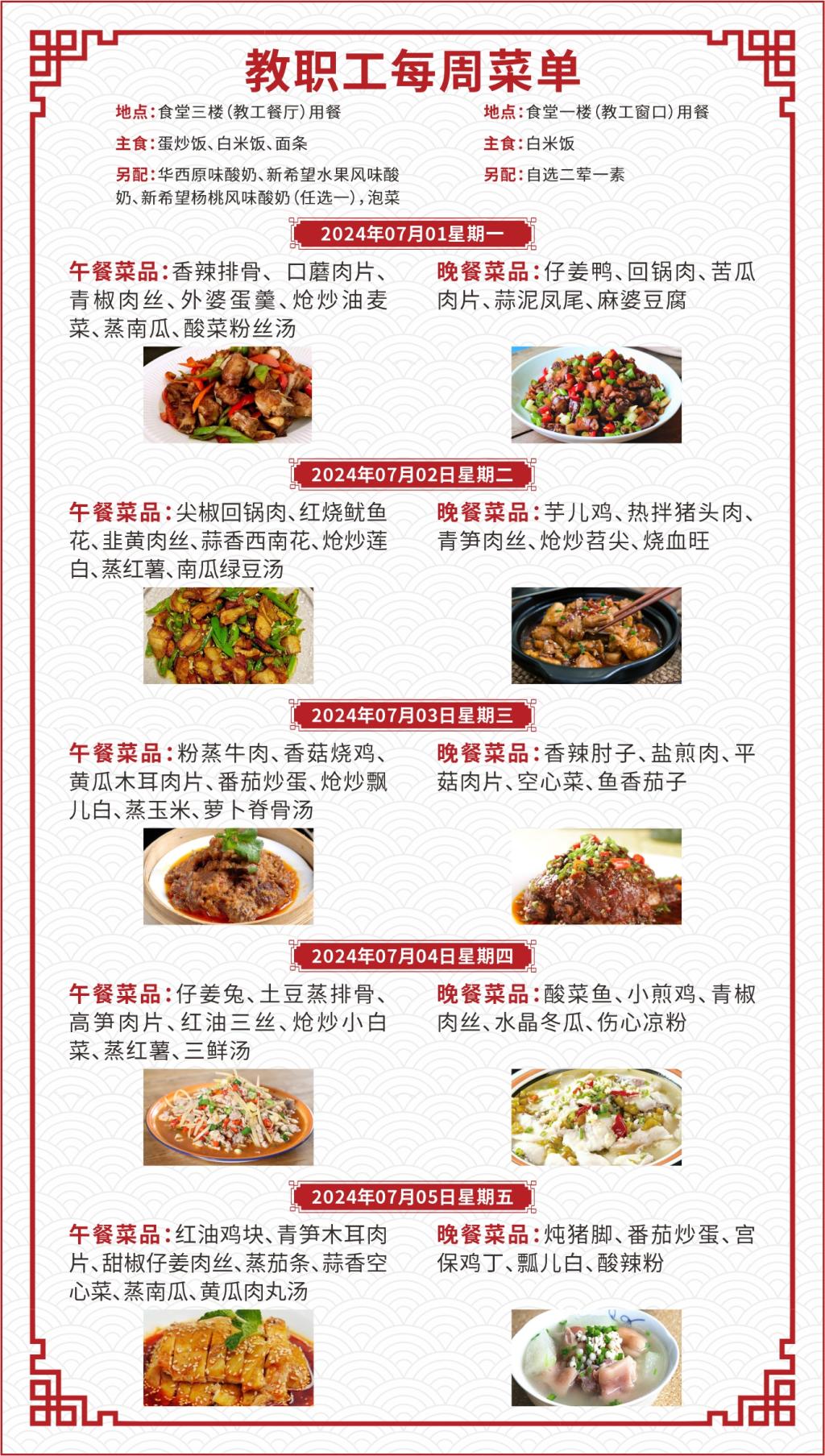 一、如遇就餐人员变化,原材料采购等原因,每日供应菜品以实际呈现为准;