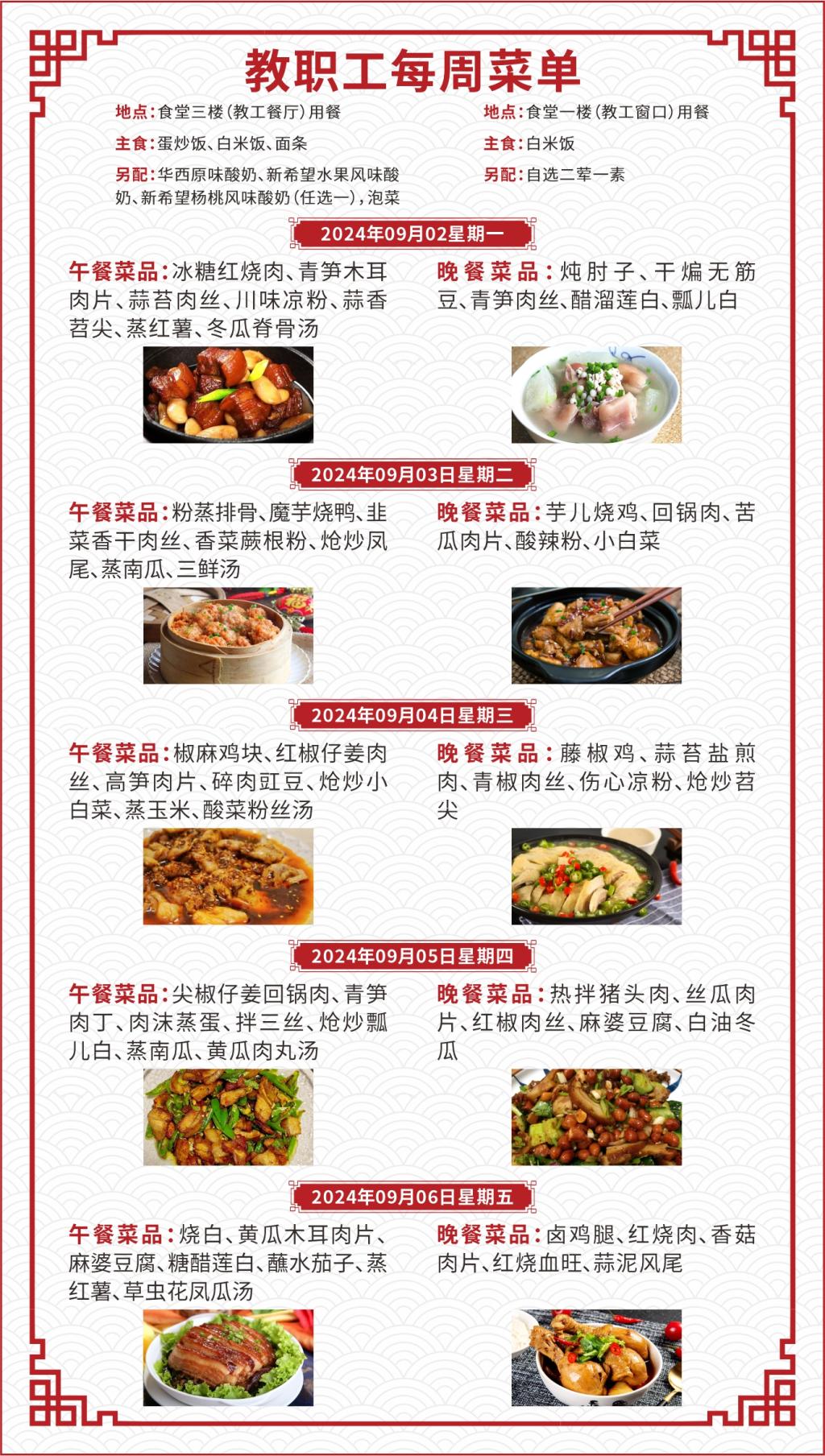 一、如遇就餐人员变化,原材料采购等原因,每日供应菜品以实际呈现为准;