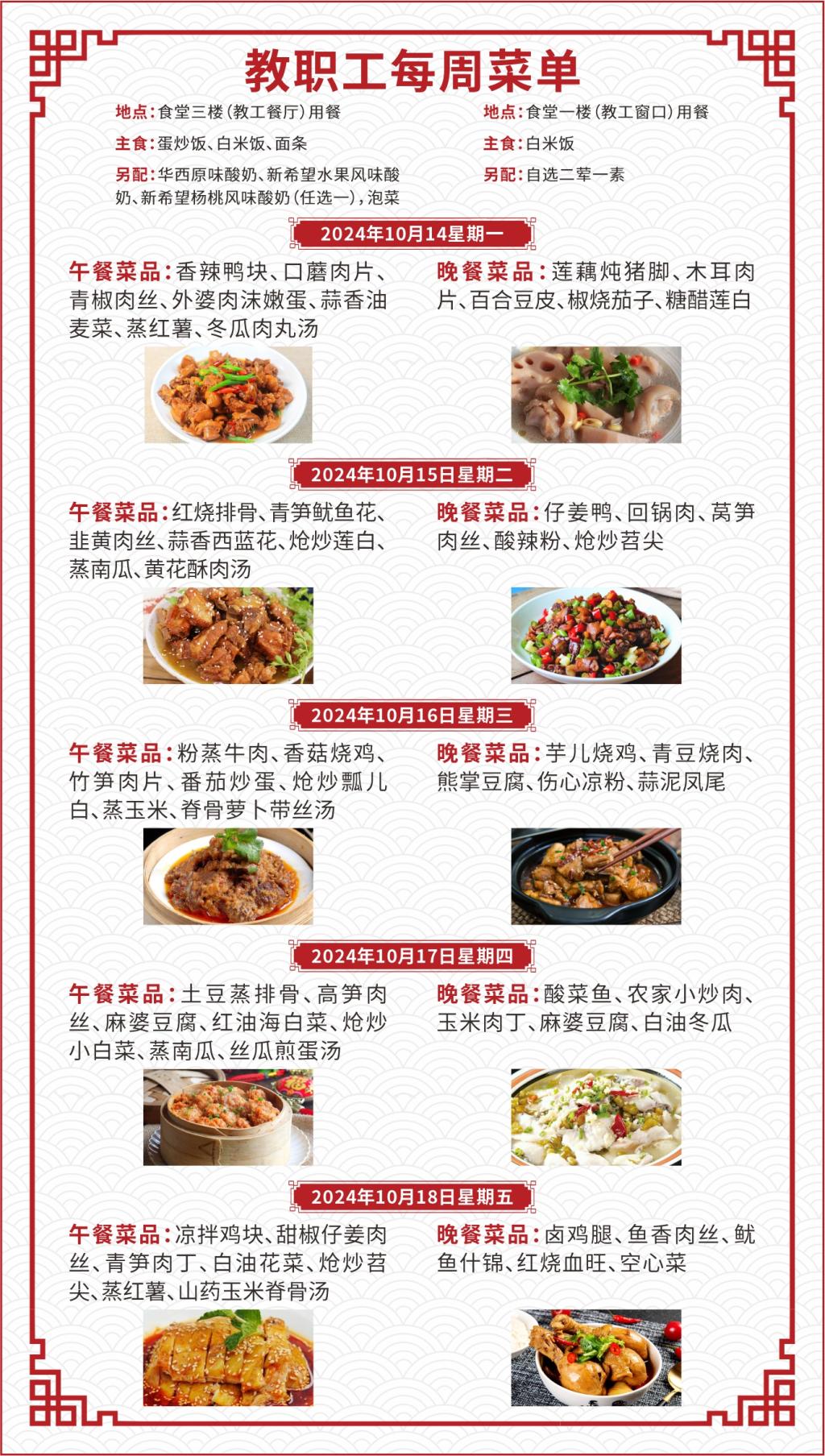 一、如遇就餐人员变化,原材料采购等原因,每日供应菜品以实际呈现为准;