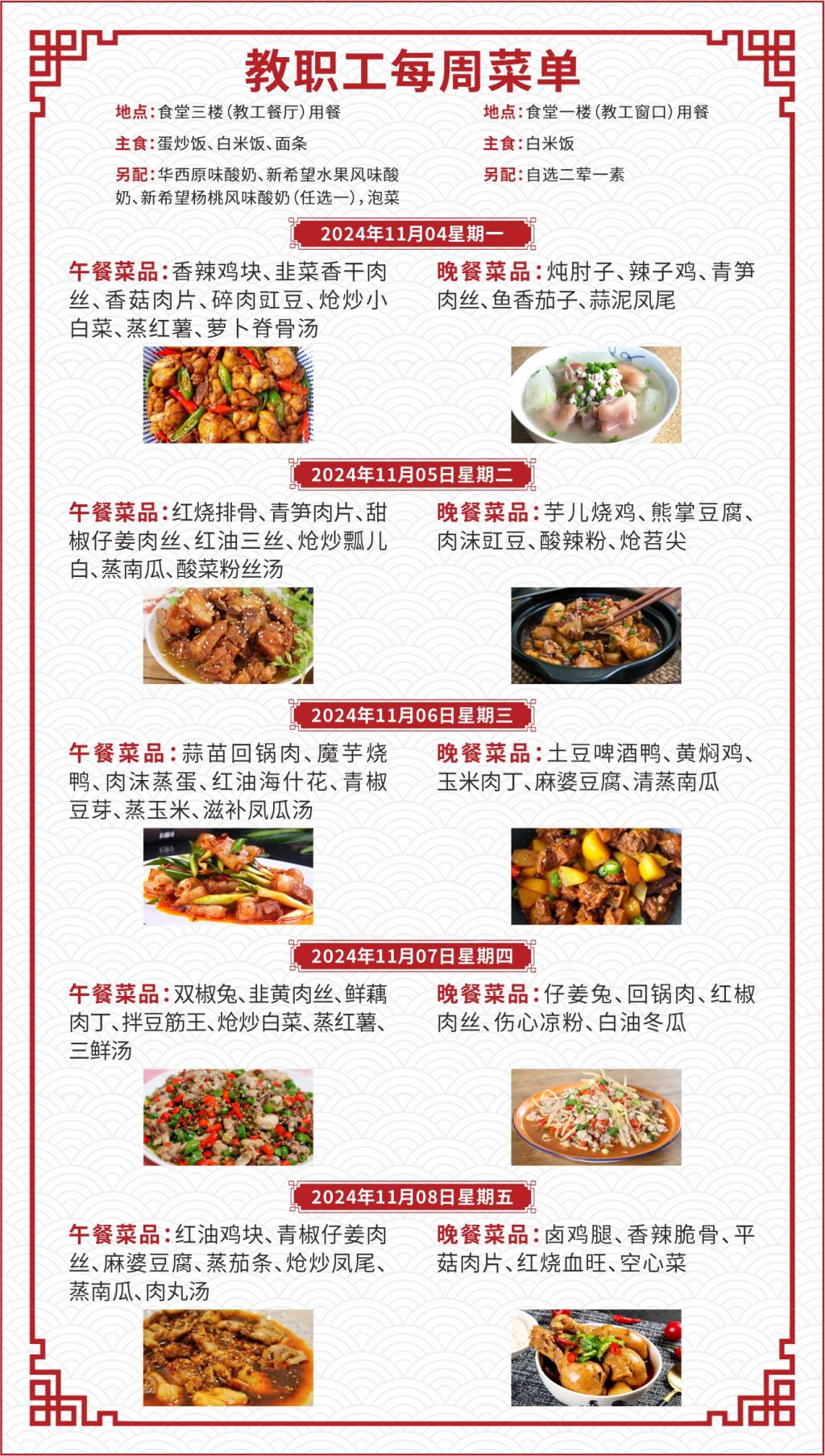 一、如遇就餐人员变化,原材料采购等原因,每日供应菜品以实际呈现为准;