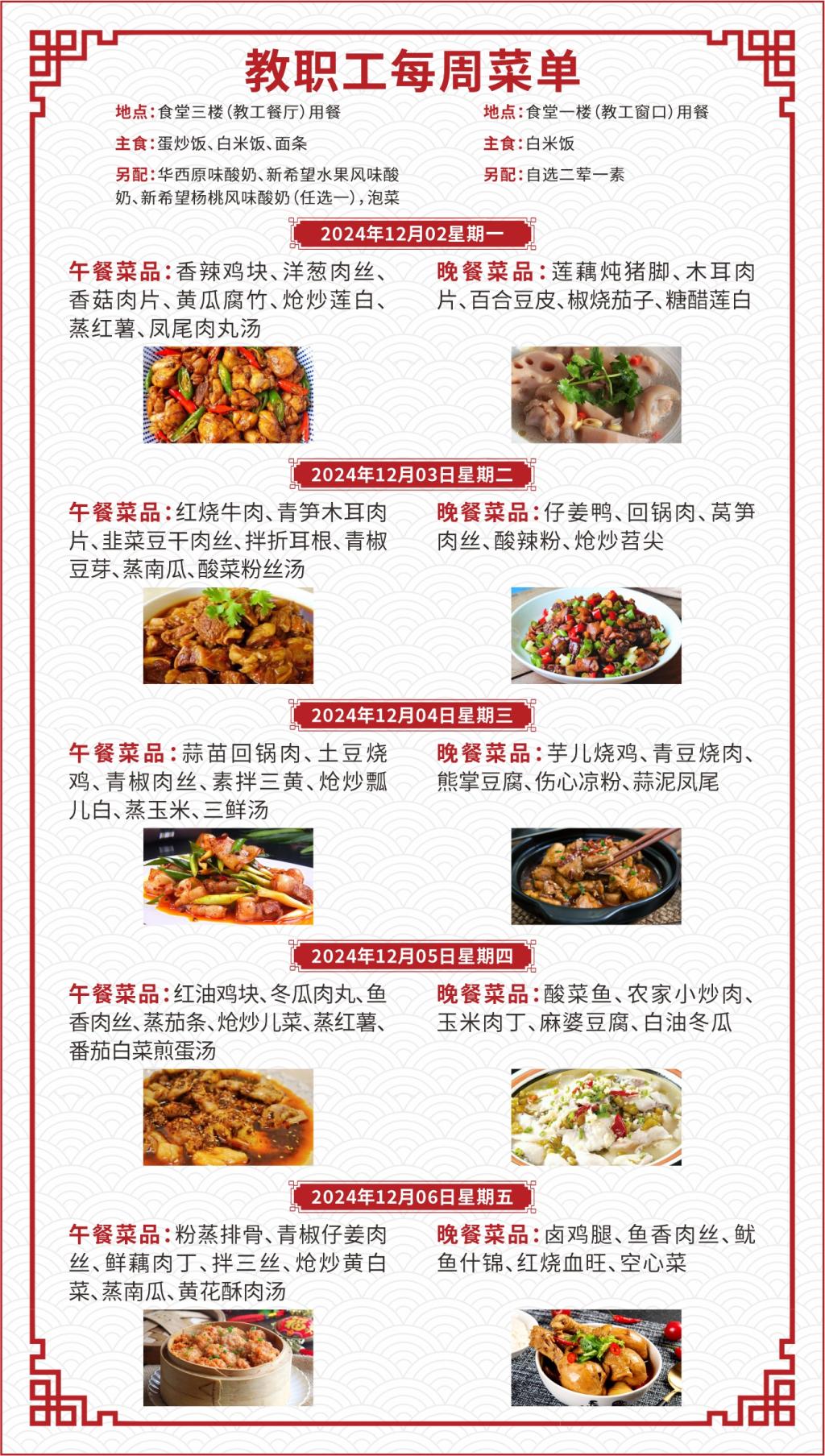 一、如遇就餐人员变化,原材料采购等原因,每日供应菜品以实际呈现为准;