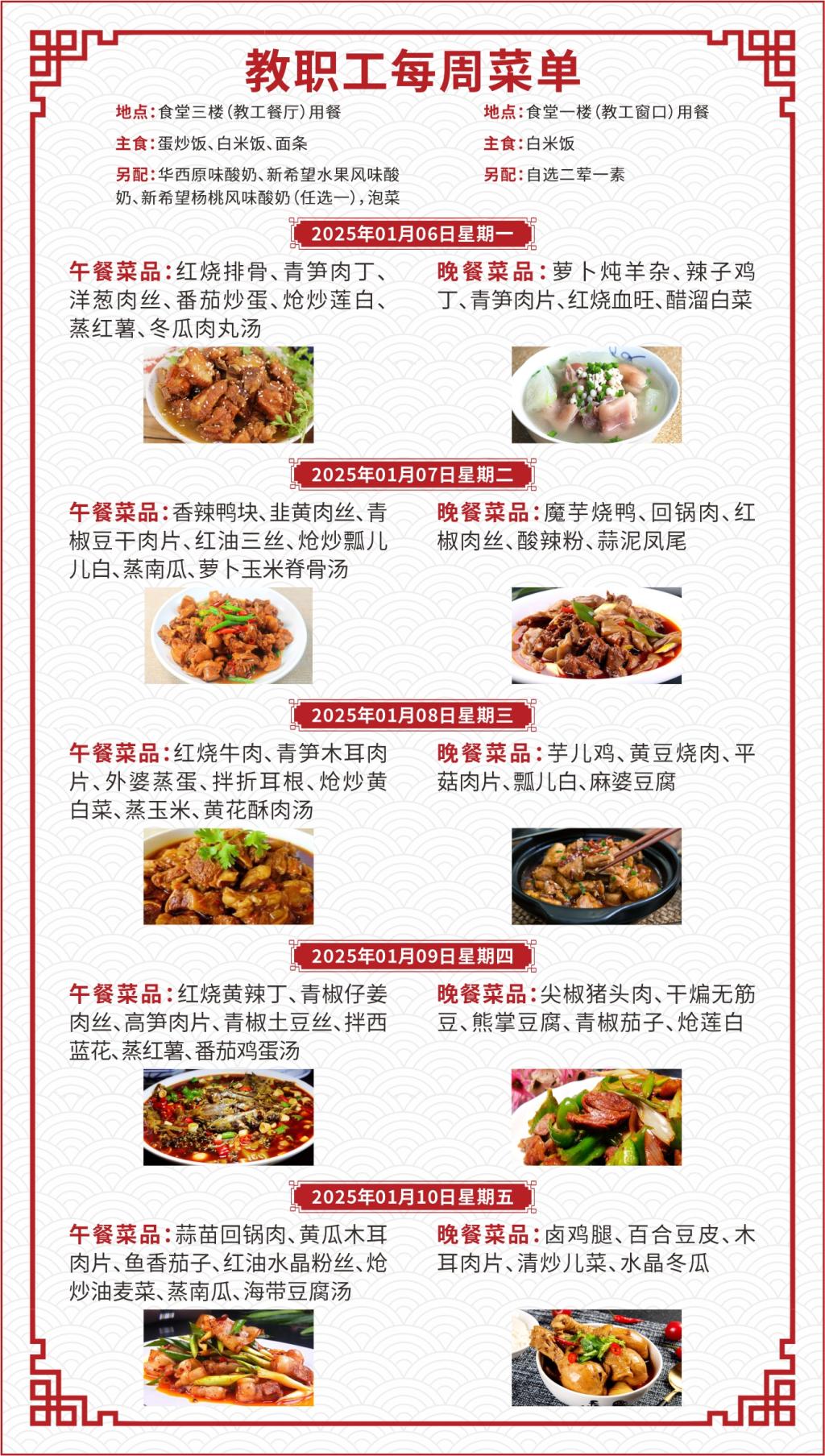 一、如遇就餐人员变化,原材料采购等原因,每日供应菜品以实际呈现为准;