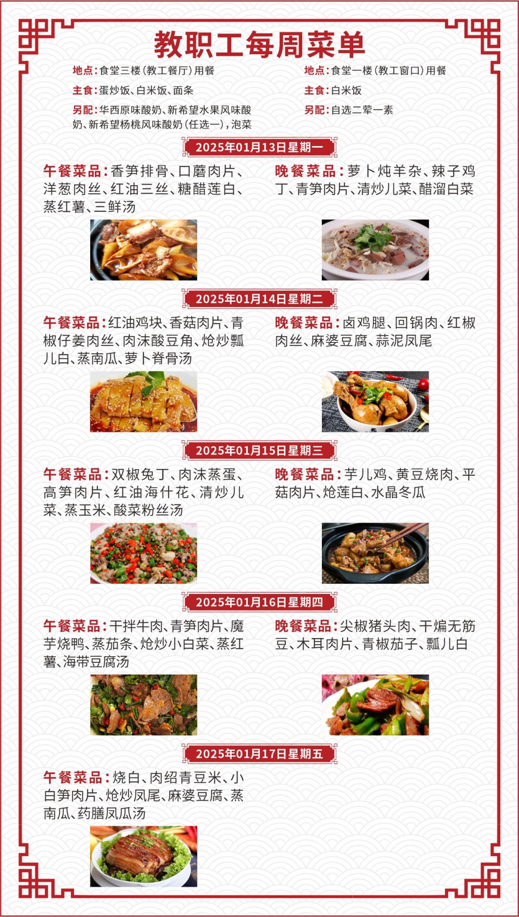 一、如遇就餐人员变化,原材料采购等原因,每日供应菜品以实际呈现为准;