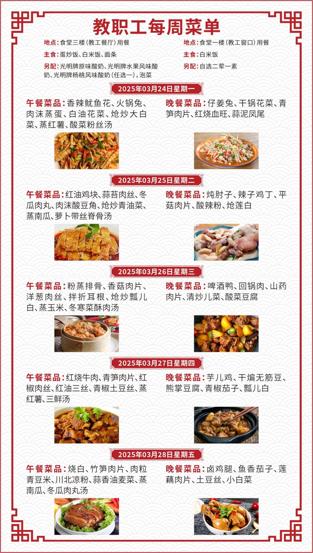 一、如遇就餐人员变化,原材料采购等原因,每日供应菜品以实际呈现为准;