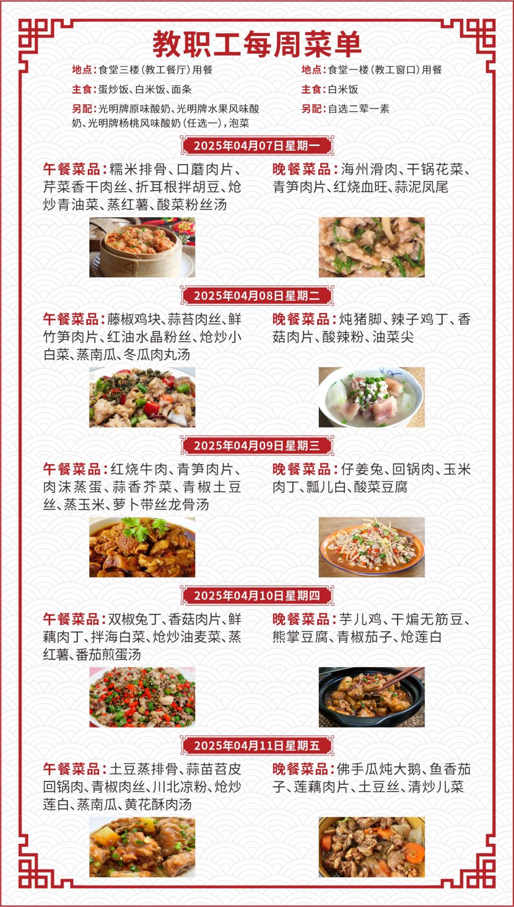 一、如遇就餐人员变化,原材料采购等原因,每日供应菜品以实际呈现为准;
