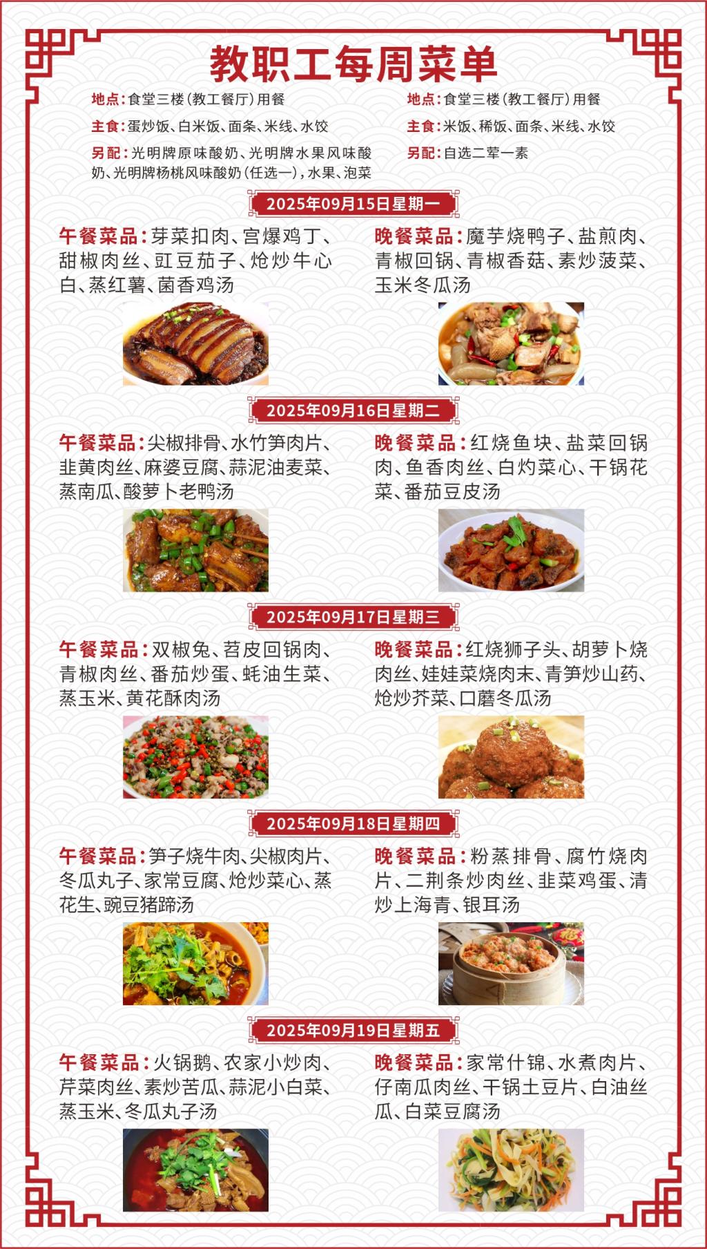 一、如遇就餐人员变化,原材料采购等原因,每日供应菜品以实际呈现为准;