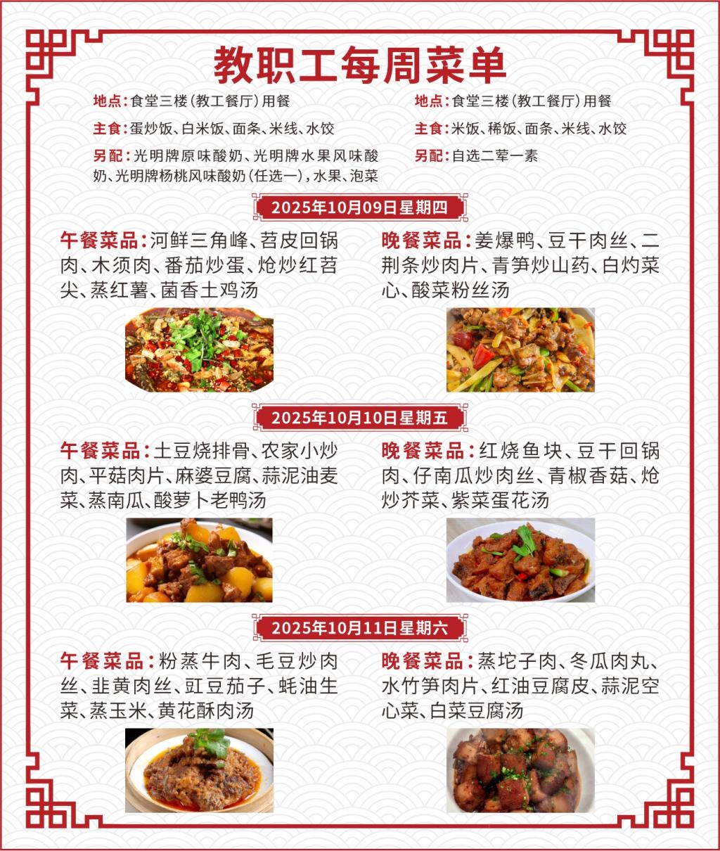 一、如遇就餐人员变化,原材料采购等原因,每日供应菜品以实际呈现为准;