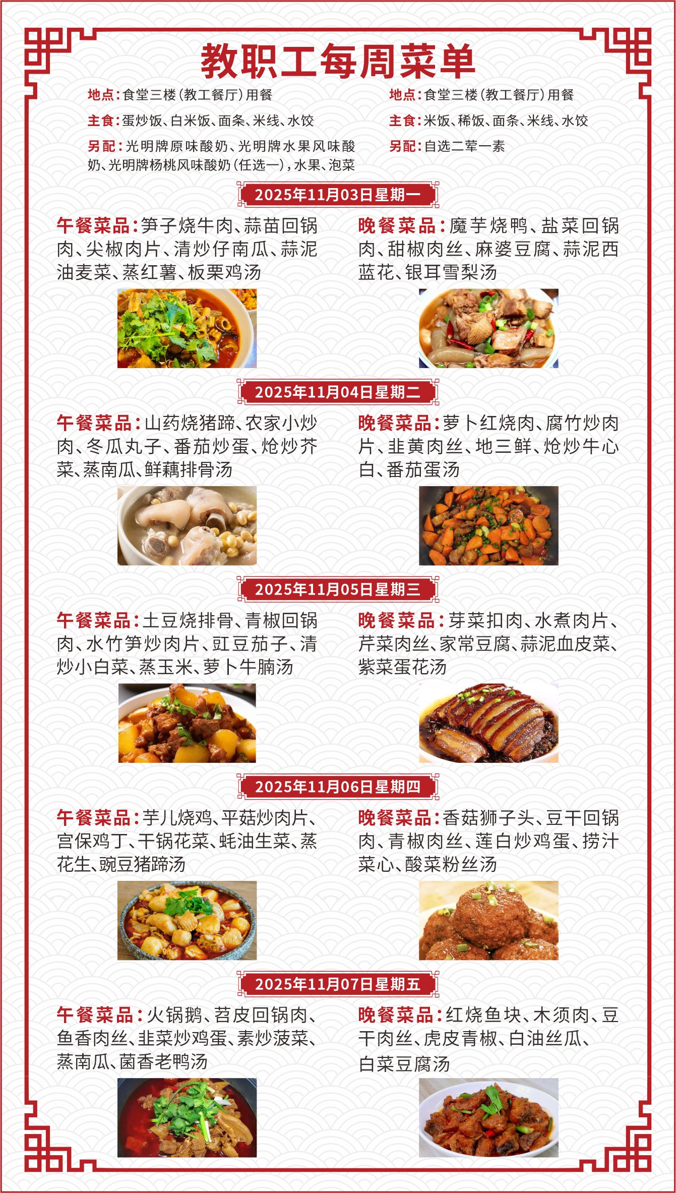 一、如遇就餐人员变化,原材料采购等原因,每日供应菜品以实际呈现为准;
