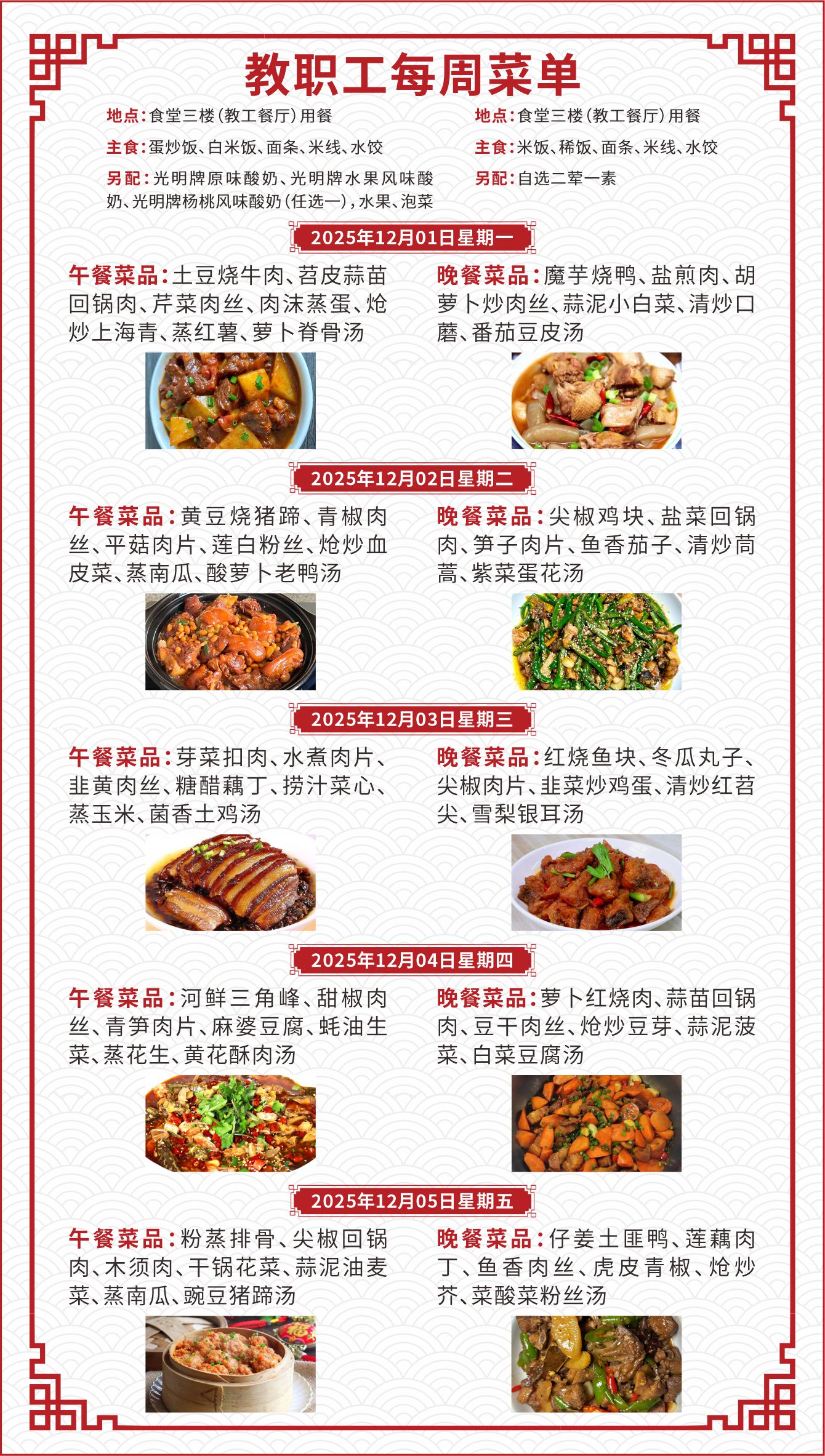 一、如遇就餐人员变化,原材料采购等原因,每日供应菜品以实际呈现为准;
