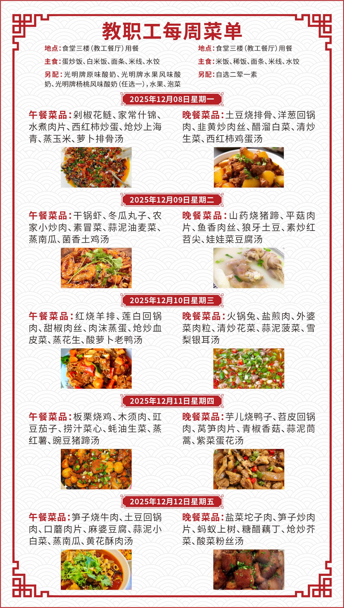 一、如遇就餐人员变化,原材料采购等原因,每日供应菜品以实际呈现为准;