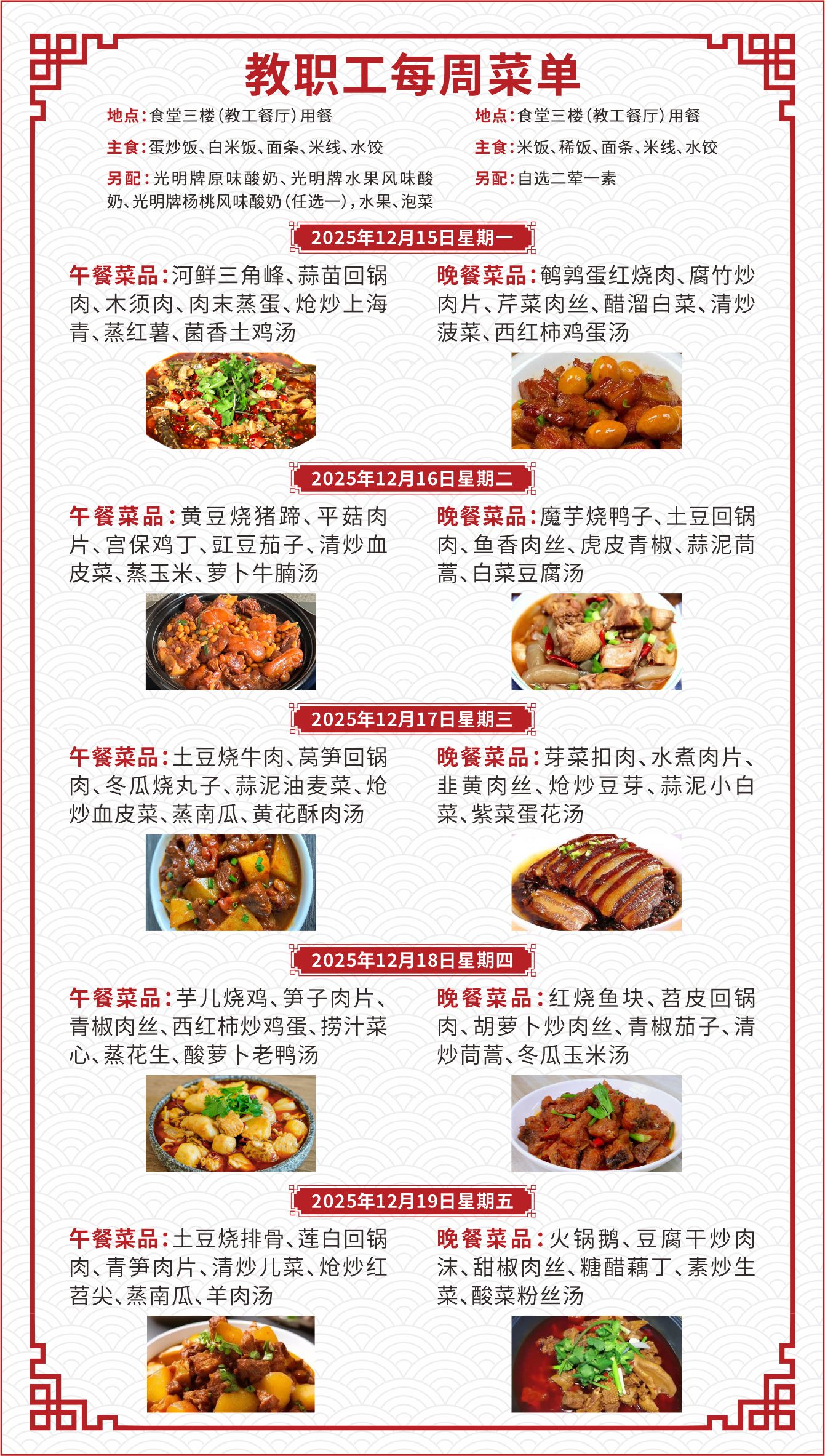 一、如遇就餐人员变化,原材料采购等原因,每日供应菜品以实际呈现为准;